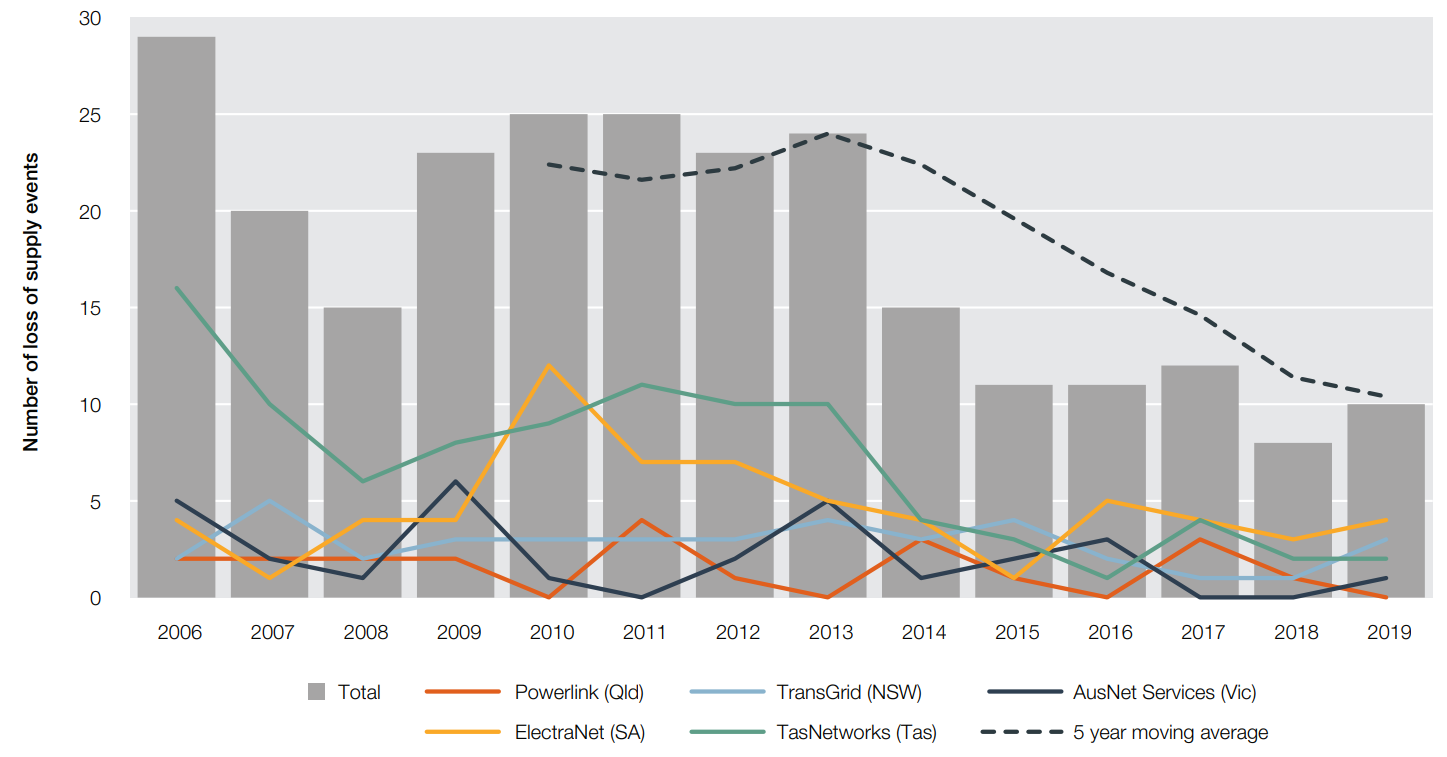 Distribution reliability measures are generally well known, but transmission reliability is less mainstream. Transmission reliability is measured by loss of supply events – defined as the number of times energy was not available to transmission network customers for between three seconds and one minute, varying by business.