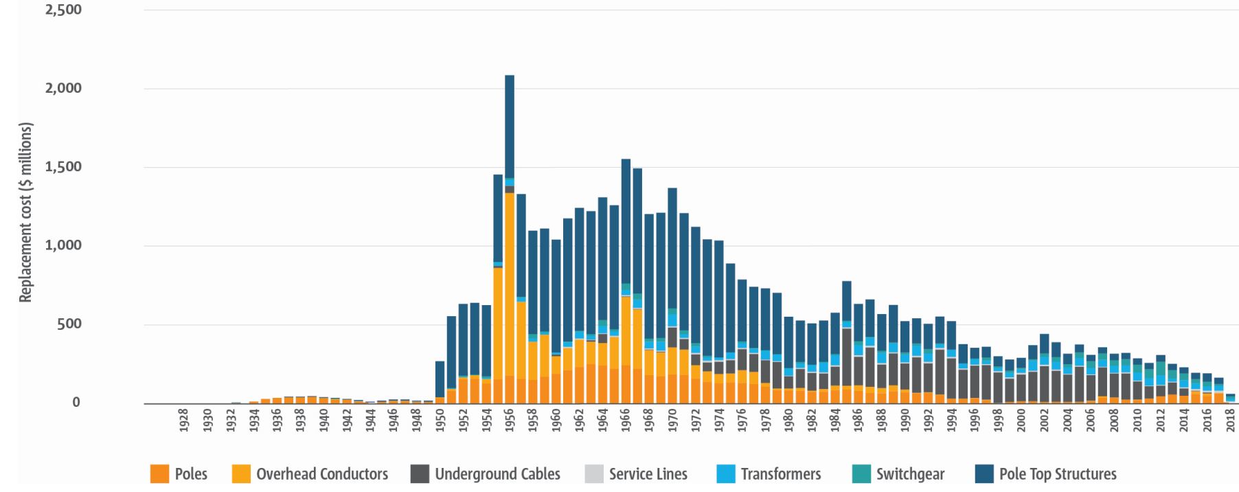 Part of the challenge is ensuring backward looking models of estimating replacement spending based on history are calibrated correctly and take into account the reality of ageing assets. An important risk to avoid is customers of the future being lumped with a disproportionate bill to refurbish the network on a mass scale while also potentially seeing lower reliability levels until replacement catches up to asset age. Innovation in ICT and DER could soften the blow, but it is unclear by how much.