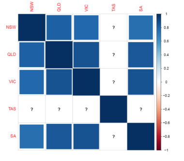 Figure 2 – Correlation of solar generation in the NEM (Source: Frontier Economics Bulletin – Sunny With a Chance of Wind .)