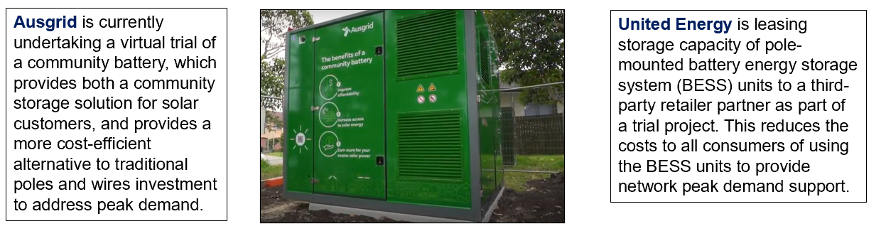 As shown below, networks such as Ausgrid and United Energy are undertaking innovative trials that ensure that consumers realise the full benefits of value stacking.