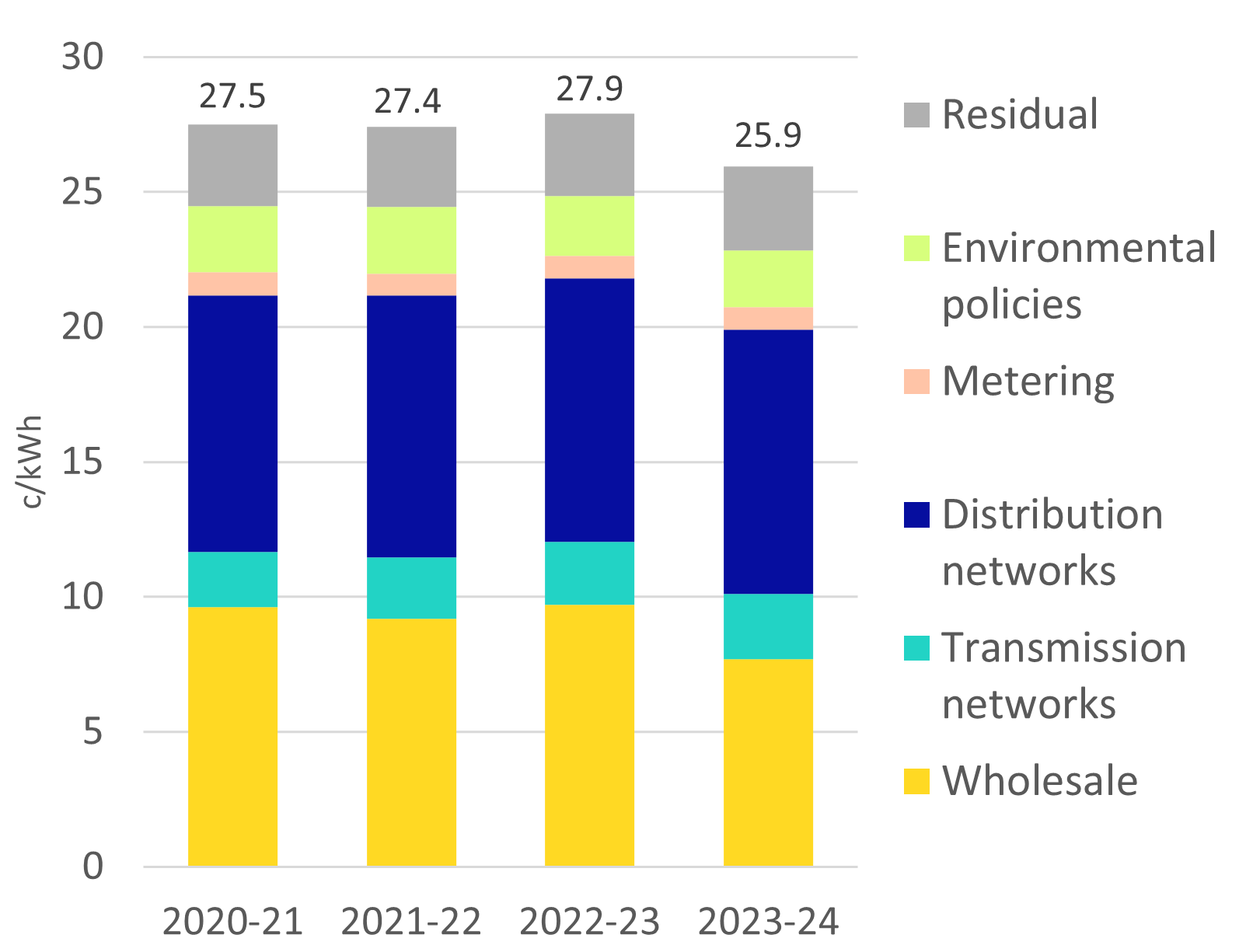 The price trends reporting series is valuable for its disaggregated description of the cost stack components that make up customer bills, providing visibility of policy costs independent from other costs. This breakdown isn’t included on customer bills where jurisdictional scheme costs are often lumped in with network charges.