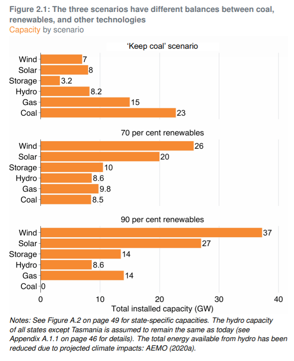 - Australian can achieve 70-90 per cent renewables with little risk to reliability or affordability, albeit achieving 90 per cent will be slightly more expensive.