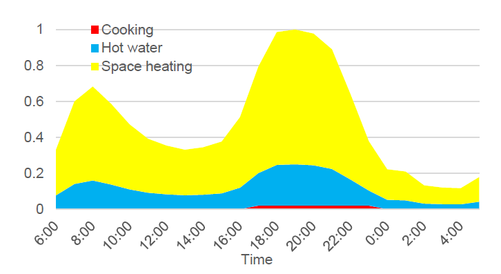 Figure 2: Normalised residential gas demand profile for a typical winter weekday (source: FFCRC (2019), RP1.1-02: Regional case studies on multi-sector integration – electrification of heating)