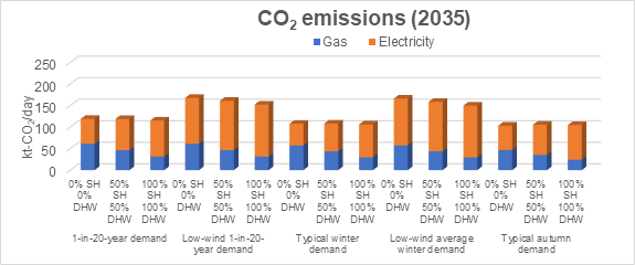 The systems modelling shows the potential for policy driven electrification – via either subsidies to the installation of heat pumps or restricting growth of gas networks – will result in increased CO2 emissions. It is not until 2035 when both options reach the same level of emissions.