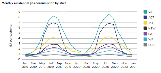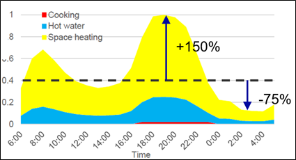 Gas consumption also varies throughout the day, with the evening peak being 150 per cent greater than the average daily consumption.