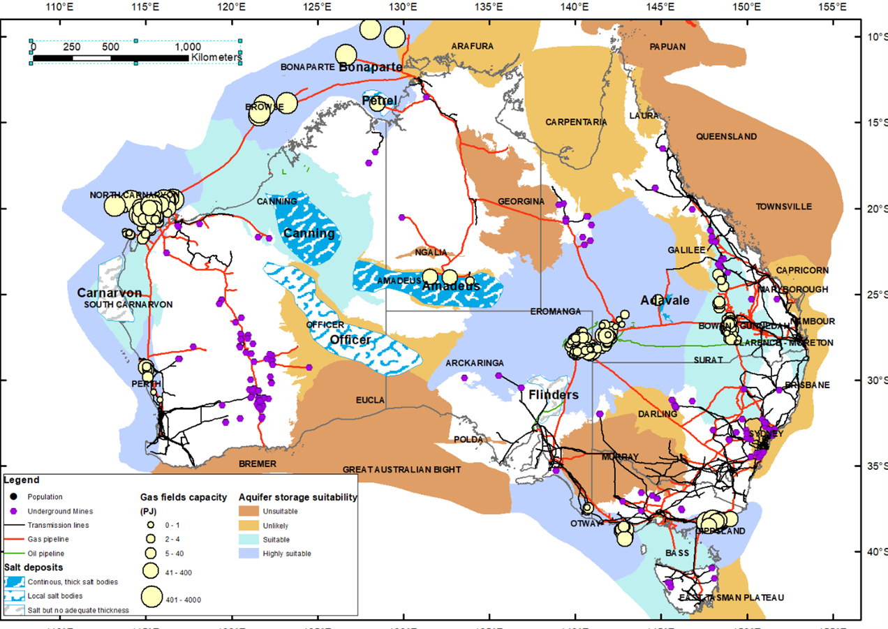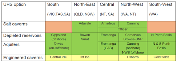 The key outcome from this initial assessment is that the scale of prospective storage is much higher than the potential demand for UHS of 600 PJ. So only a few sites would be needed in each region.