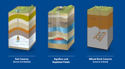 Figure 2: Underground storage options (source: https://www.entrepose.com/en/geostock-sandia/expertise/)