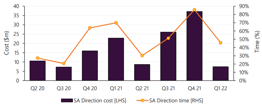 Figure 3: time and cost of system security directions (energy only) in South Australia