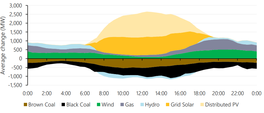 Solar and wind have increased significantly while gas and hydro are filling in the gaps. Coal is coming out across the board, but particularly during the daylight hours. And there’s plenty of time left on this ride. Black coal was still at 44 per cent of NEM generation in Q1 2022 (down 3.2 per cent from the previous year) and brown coal at 16.3 per cent (down 1.9 per cent). While this is driven in part by high levels of coal outages across the NEM (planned and unplanned), the longer-term driver is the continued entry of renewables and its impact on balance sheets. Each announcement bringing forward coal closures is less surprising than the last.