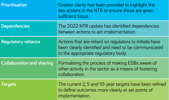 Given these findings, the NTR has been updated to provide greater clarity in terms of implementation priorities, stakeholder dependencies and outcomes.