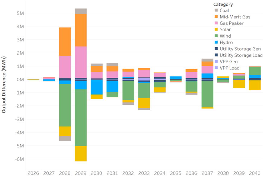 Figure 2 – Generation mix impact of a two-year delay to the Draft 2022 ISP optimal development path