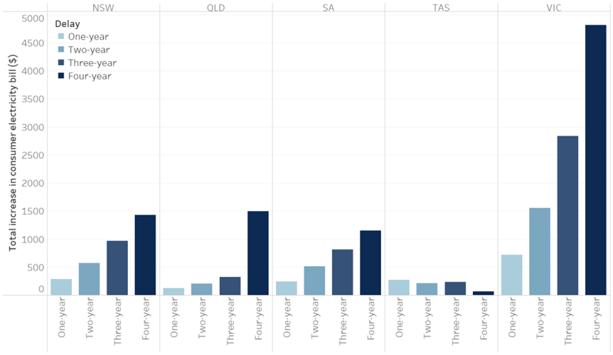 Zooming back out to the bigger picture – a four-year delay to transmission investment would add just over $82.5 billion to residential and business power bills over the long-term across the NEM.[1] A one year delay –$12.5 billion.