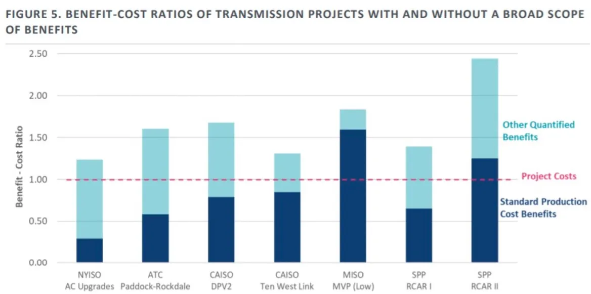 Consulting firm Brattle Group analysed several past US transmission projects with and without the broad scope of benefits.