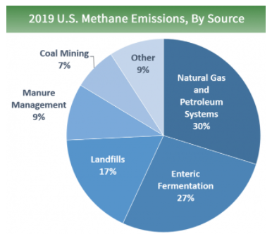 Figure 4: Breakdown of US methane emissions by industry sector (Source: www.epa.gov)