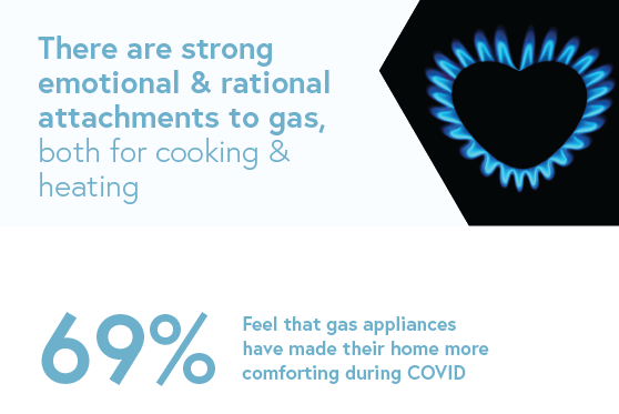 Customers continue to favour gas as a fuel of choice. A recent survey showed that 69 per cent of customers felt that their gas appliances made their home more comfortable during the COVID lock down periods and subsequent working from home.